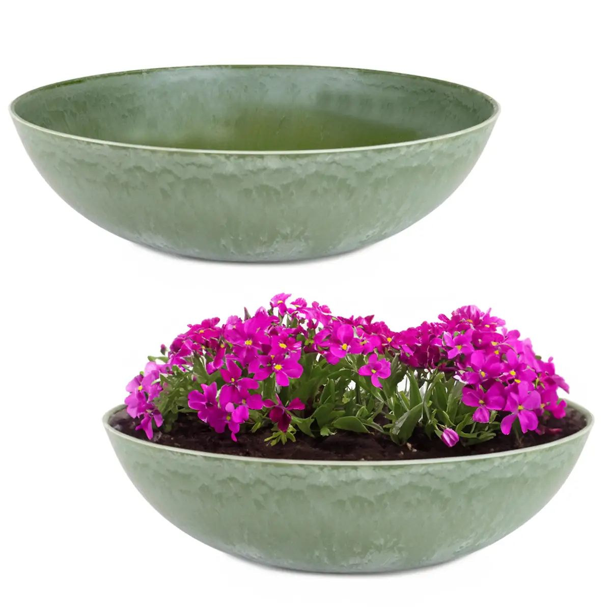 matches21 Pflanzschalen für draußen – Dekoschalen grün marmoriert als Blumentöpfe Pflanztöpfe – Schalen in 3 Größen für Garten, Balkon oder Friedhof als Grabschale