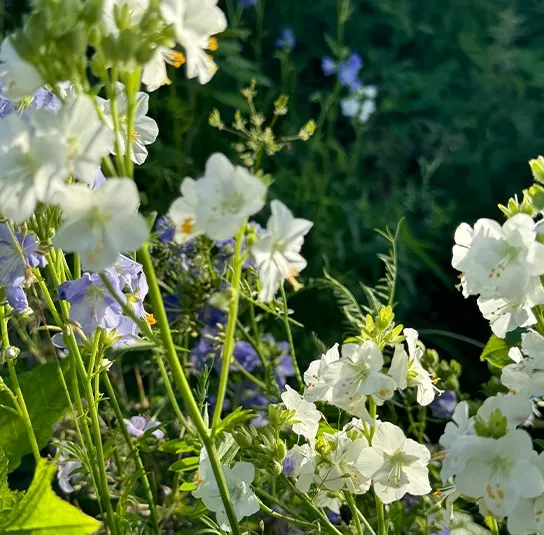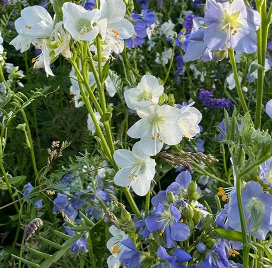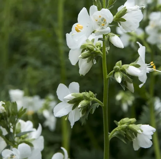 Botanisch: Polemonium caeruleum ‚Alba‘