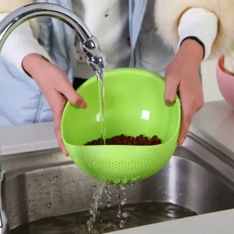 Produkttitel: Reiswasch- und Filtersieb, Obst- und Gemüseschüssel mit Abtropffunktion.