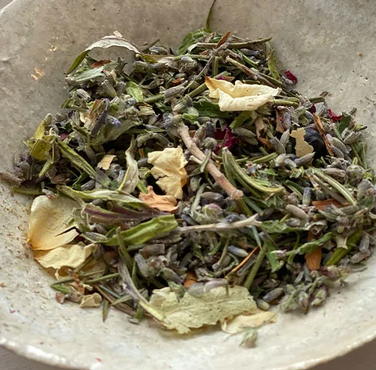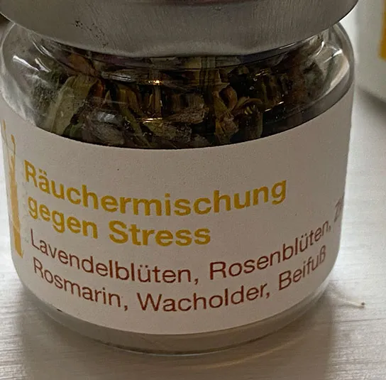 Räuchermischunggegen Stress zusammengestellt, handgesammelt, getrocknet von Elisabeth, großteils in ihrem Naturgarten!
