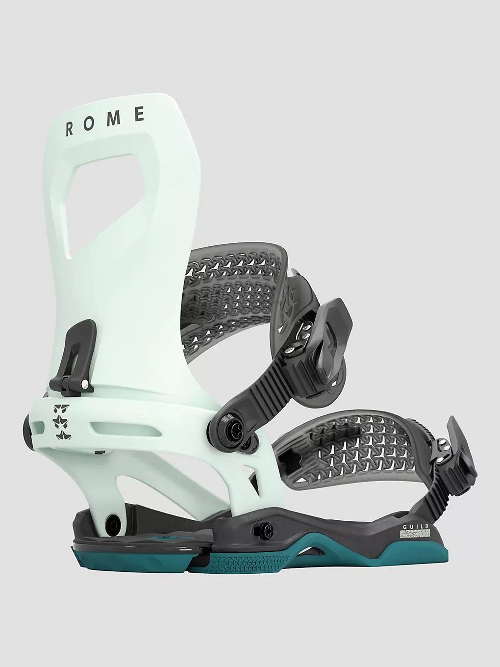 Reaktive Bindung mit Raum zum Tweaken . Die Rome Guild ist die kleine Schwester der Katana, gemacht für Mädels, die eine erstklassige Bindung suchen, kleine Abstriche bei den Features machen können und damit ihren Geldbeutel schonen. Basierend auf der neuen AsymWrap Plattform, ist die Guild eine superleichte, anpassbare und ride-everywhere Performance Bindung von Rome. Die Guild bietet eine Mischung aus Stabilität und Flexibilität, die auf diesem Preisniveau ihresgleichen sucht. Konzipiert für Fahrerinnen, die frei entscheiden wollen, wann sie ins Backcountry abtauchen, kleine Obstacles hitten wollen oder auf der Piste cruisen – die Guild ist für alle Schandtaten bereit. HighbackDas Women Specific Guild Highback mit mittlerem Flex ist auf die Anatomie von Frauen ausgerichtet. Die Full Highback Rotation ermöglicht dir deine Kraft in jede Richtung zu übertragen. Du kannst das Highback an die Stellung deiner Fersen anpassen und erhältst damit perfekte Kraftübertragung. Der Forward Lean lässt sich schnell, einfach und Werkzeug-frei einstellen.BaseplateDie neue AsymWrap Baseplate bietet dir ein Surf-Feeling und kommt mit rund 20 % weniger Gewicht als die vorherige Baseplate aus. Die Flare konzertiert sich auf eine smoothe, flexible Ride.StrapsDie ProFlex Ankle Straps sind brandneu und werden von AuxTech™ mit Power versorgt. Sie sind unglaublich dehnbar, extrem haltbar und bieten hervorragenden Halt. Die ProGrip Toe Straps arbeiten mit einem innovativen Netzwerk kleiner Scharniere, die unübertroffenen Halt und einen festen Halt bieten. Die PivotMount Max Technology bietet insgesamt 64 verschiedene Konfigurationen deiner Straps.