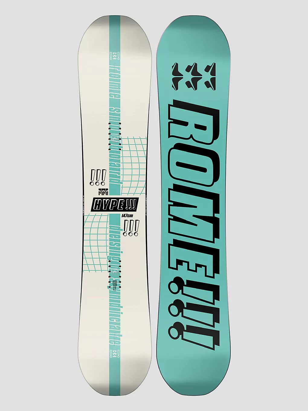 Ein brandneues All-Mountain-Modell in der Rome Women’s Line. Das Rome Hype ist brandneu und auf Riderinnen ausgelegt, die nach einem Board suchen, das alles mitmacht und dabei den Freestyle-Fokus nicht aus den Augen lassen. Ein True Twin für beste Performance im Park, kommt hier gepaart mit einem weichen verspielten Flex und reaktiven Bamboo HotRods für viel Pop und Snap. Das Hype nimmst du vom Park mit auf die Piste und legst zwischendurch noch den ein oder anderen Powder Run ein. Riding StyleDas Hype bietet dir Freestyle Performance, gepaart mit einer Portion All-Mountain und einer kleinen Prise Powder. Von Park bis Powder – dieses Board macht alles mit und bleibt dabei verspielt.ShapeDer True Twin Shape ist perfekt symmetrisch und bietet dir somit forward, genauso wie switch, die gleichen Fahreigenschaften.ProfilDas Fusion Camber Profil kombiniert eine klassische Camber Vorspannung zwischen den Bindungen, mit einem Rocker in Tip und Tail. Somit entsteht ein verspieltes und fehlerverzeihendes Fahrgefühl, während der Pop und die Präzision der Camber Vorspannung erhalten bleiben.FlexDer soft-medium Flex macht das Board sehr flexibel, perfekt für Butter Tricks und Tweaks. Zusätzlich bieten weichere Boards ein spaßiges Fahrgefühl und einen komfortablen Ride durch jedes Terrain.KonstruktionDie Impact Base ist schnell und bleibt dabei pflegeleicht. Eine extrudierte Mischung macht diese Base sehr robust, ohne an Geschwindigkeit einzubüßen. Ideal für Rails und Boxen. HotRods sind dünne Röhren aus Karbon, Bambus oder Fiberglas und werden in ausgefrästen Kanälen im Holzkern des Boards eingelassen. Der Flex und Pop kann so genau platziert und verändert werden. In dem Hype wurden Bambus HotRods verbaut, die sich perfekt pressen lassen und noch mehr Fun in dieses Snowboard packen. Double Kicks an Nose und Tail erhöhen zudem die Pressability und sorgen für mehr Stabilität.