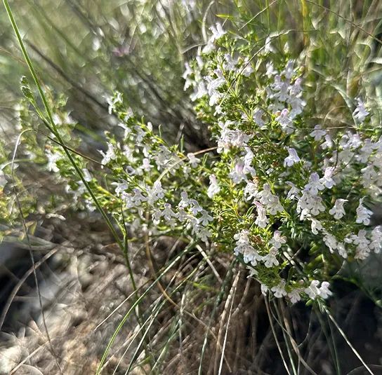 Blüte: weiße bis zart-violette Lippenblüten, die Blütenstände enthalten ein bis sieben Blüten mit einer dreilappigen Unterlippe