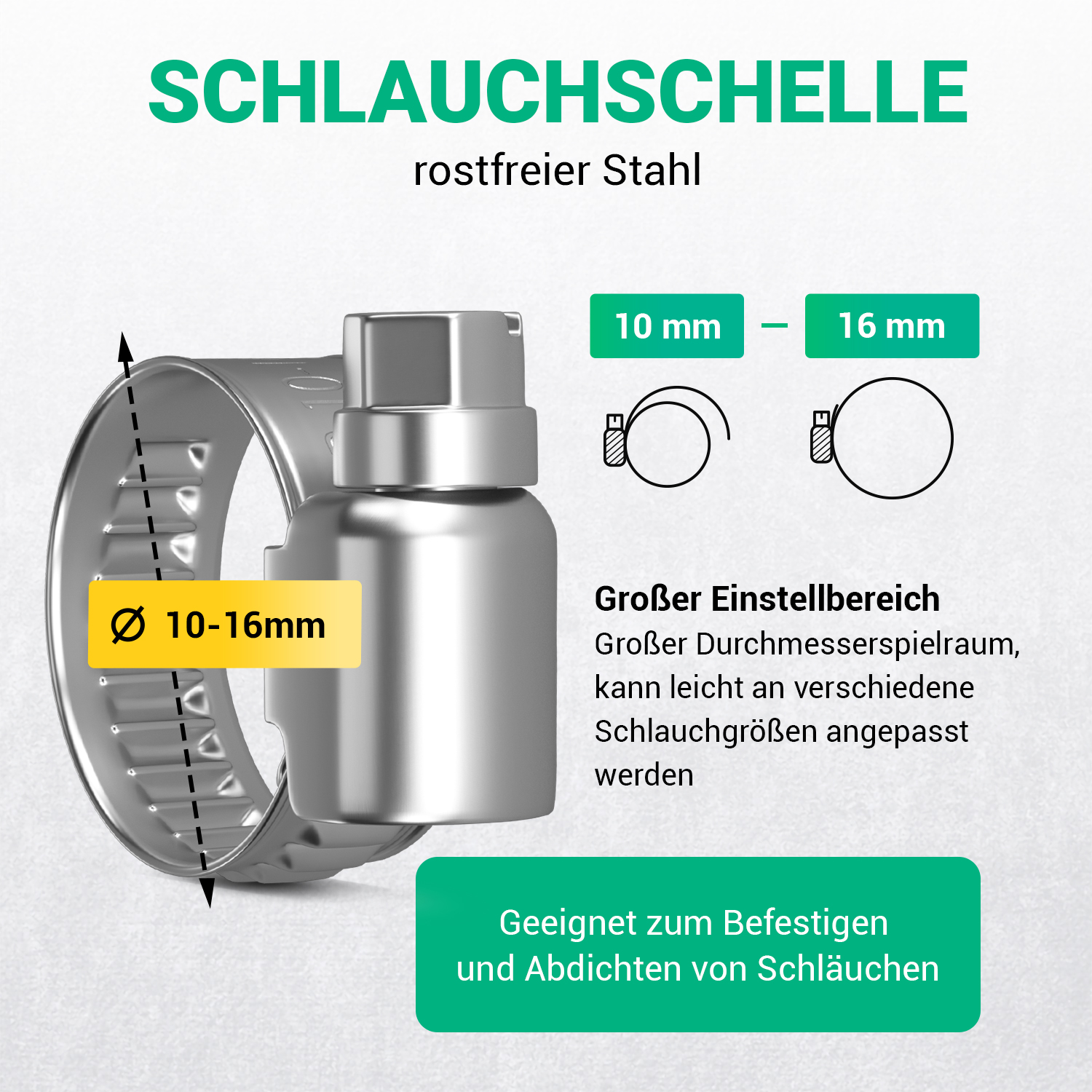Schlauchschelle Set 10x Klemme 10-16mmØ W2 Chromstahl für Waschmaschine