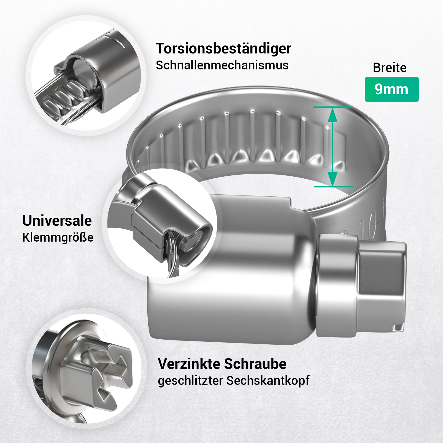Schlauchschelle Set 10 Stk Klemme W2 Chromstahl für Schlauch Geschirrspüler