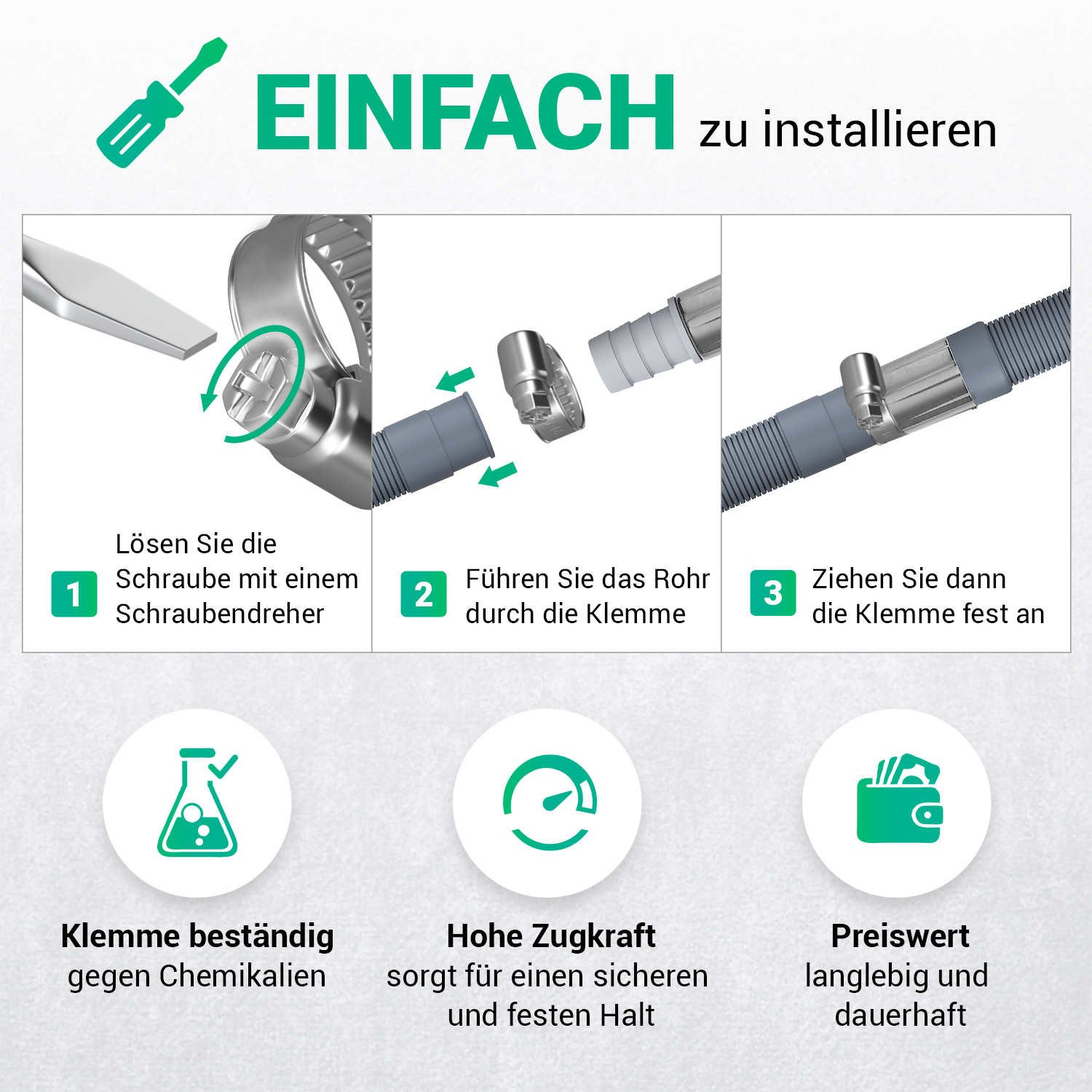Schreibe die erste Bewertung für „Schlauchschelle Set 10x Klemme 10-16mmØ W2 Chromstahl für Waschmaschine“