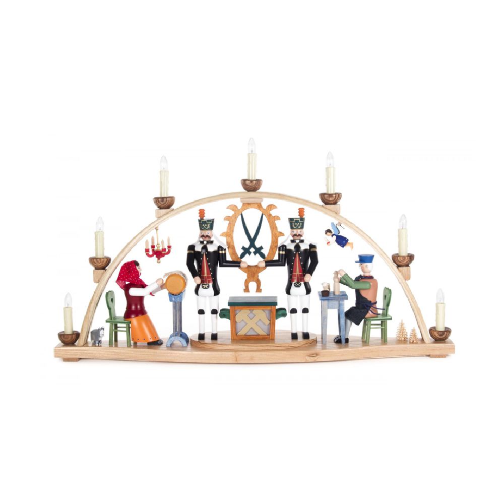 Erzgebirgische Traditionen vereint auf einem Schwibbogen.