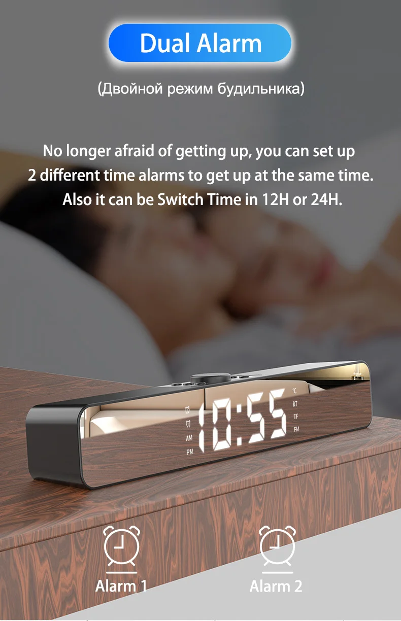Unterstützung: Bluetoth, TF karte eingang, 3,5mm audio eingang, FM rasio, dual-alarm