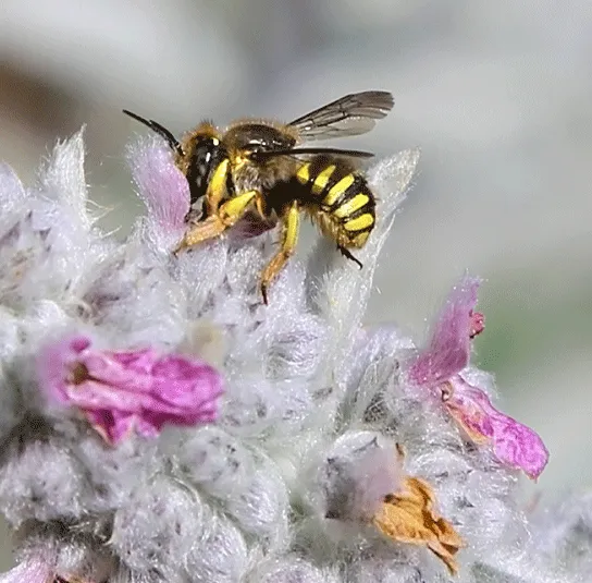 Anwendungen: Die Pflanze wird schon seit vielen Jahren in der Naturmedizin verwendet. Durch die hohe Saugfähigkeit der Blätter eignen sie sich als Wundauflage bei verschiedensten Verletzungen. Außerdem sollen sie eine entzündungshemmende Wirkung zeigen. Bei Insektenstichen kann ein Blatt der Pflanze ausgedrückt und der Saft auf die entsprechende Stelle aufgetragen werden. Die Pflanze soll ebenso eine effektive Wirkung bei Augenentzündungen, Erkältungen, Verdauungsproblemen und Asthma haben.[/vc_column_text][/vc_tta_section][vc_tta_section title=“Nutzen für Tiere“ tab_id=“1599296370427-92f3e95b-e19e“][vc_column_text text_larger=“no“]Diese eigentlich nicht heimische Pflanze ist auch bei unseren Wildbienen sehr begehrt. Einerseits als Nahrungsquelle für Pollen und Nektar und andererseits als Baumaterial z.B. der Garten-Wollbiene (Anthidium manicatum). Diese sammeln die feinen Härchen und verarbeiten diese in ihren Nestern. Die Blüten der Zieste werden von den Männchen dieser Biene penibel gegen alle Eindringlinge (auch Schmetterlinge) verteidigt. Auch bei Hummeln sind die Blüten sehr beliebt.