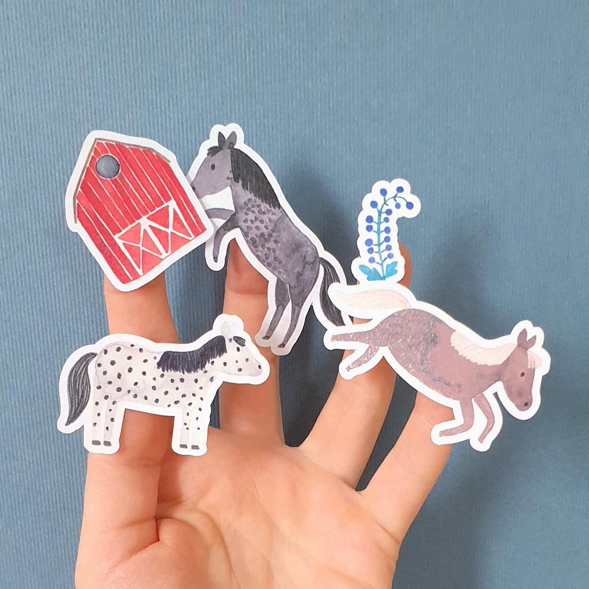 Papieraufkleber im DIN A5 Format, vorgestanzt, mit vielen kunterbunten Aufkleber-Motiven.