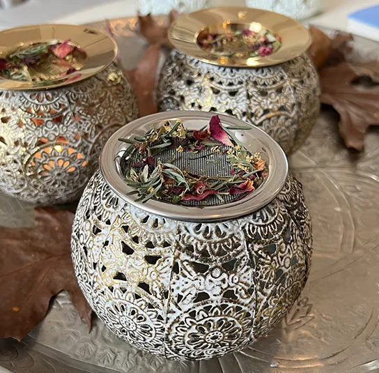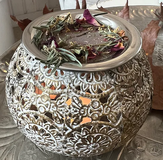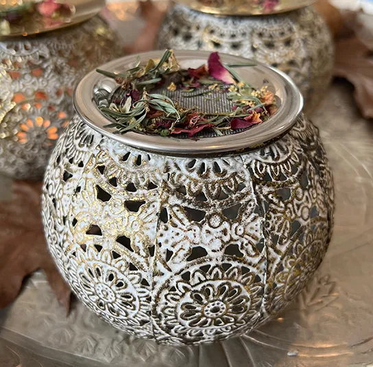 Stövchen weiß/gold klein mit Edelstahlsieb