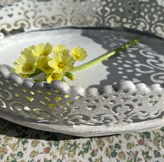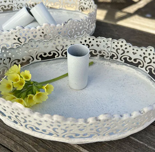 Angebot! Tablett antique creme oval99,00 € Ursprünglicher Preis war: 99,00 €29,70 €Aktueller Preis ist: 29,70 €. Tablett antique oval Klein: l = 19cm b = 12cm Groß: l = 25cm b = 15cm Größe Wähle eine OptionGroßKleinLeeren - Tablett antique creme oval Menge + In den Warenkorb Artikelnummer: n. v. Kategorien: Oster- und Frühlingsdekorationen, Schönes für Daheim, Tablett & Teller Zusätzliche Informationen Bewertungen (0) Zusätzliche Informationen Größe Groß, Klein Bewertungen Es gibt noch keine Bewertungen. Schreibe die erste Bewertung für „Tablett antique creme oval“ Antworten abbrechenDeine E-Mail-Adresse wird nicht veröffentlicht. Erforderliche Felder sind mit * markiertDeine Bewertung * Bewertung… Ausgezeichnet Gut Durchschnittlich Nicht ganz schlecht Sehr schlecht Deine Bewertung *Name * E-Mail * Meinen Namen, meine E-Mail-Adresse und meine Website in diesem Browser für die nächste Kommentierung speichern. Ähnliche Produkte Windlicht Evighet groß gerade Angebot! 199,00 € Ursprünglicher Preis war: 199,00 €59,70 €Aktueller Preis ist: 59,70 €. In den Warenkorb Vase Frühling mit Henkel Angebot! 199,00 € Ursprünglicher Preis war: 199,00 €59,70 €Aktueller Preis ist: 59,70 €. In den Warenkorb Platzset, Setzgedeck beige Angebot! 129,00 € Ursprünglicher Preis war: 129,00 €38,70 €Aktueller Preis ist: 38,70 €. In den Warenkorb Herz zum Hängen weiß Metall Angebot! 69,00 € Ursprünglicher Preis war: 69,00 €20,70 €Aktueller Preis ist: 20,70 €. In den Warenkorb