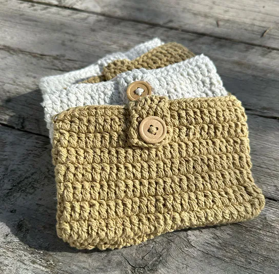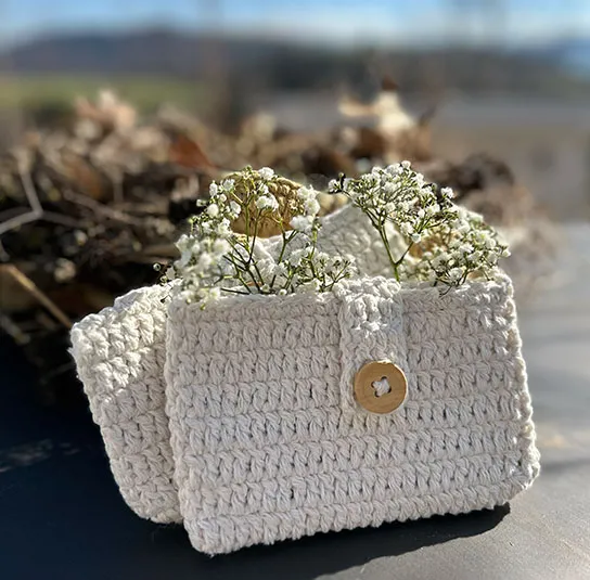 [vc_row][vc_column][vc_column_text text_larger=“no“]Gehäkeltes Täschchen, Geldbeutel, Aufbewahrungstasche in weiß oder gelb