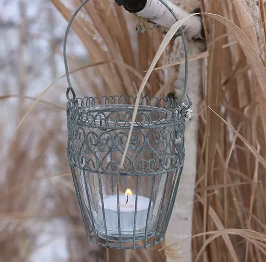 Windlicht zum Hängen hellgrau mit Henkel in 3 Varianten