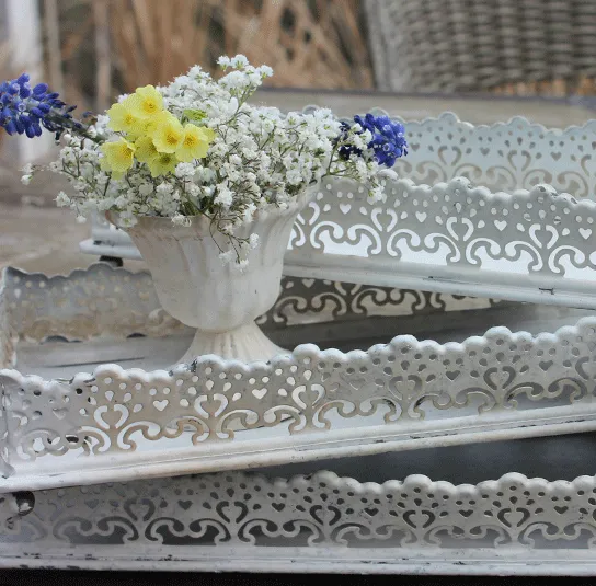 Teller weiß Metall länglich