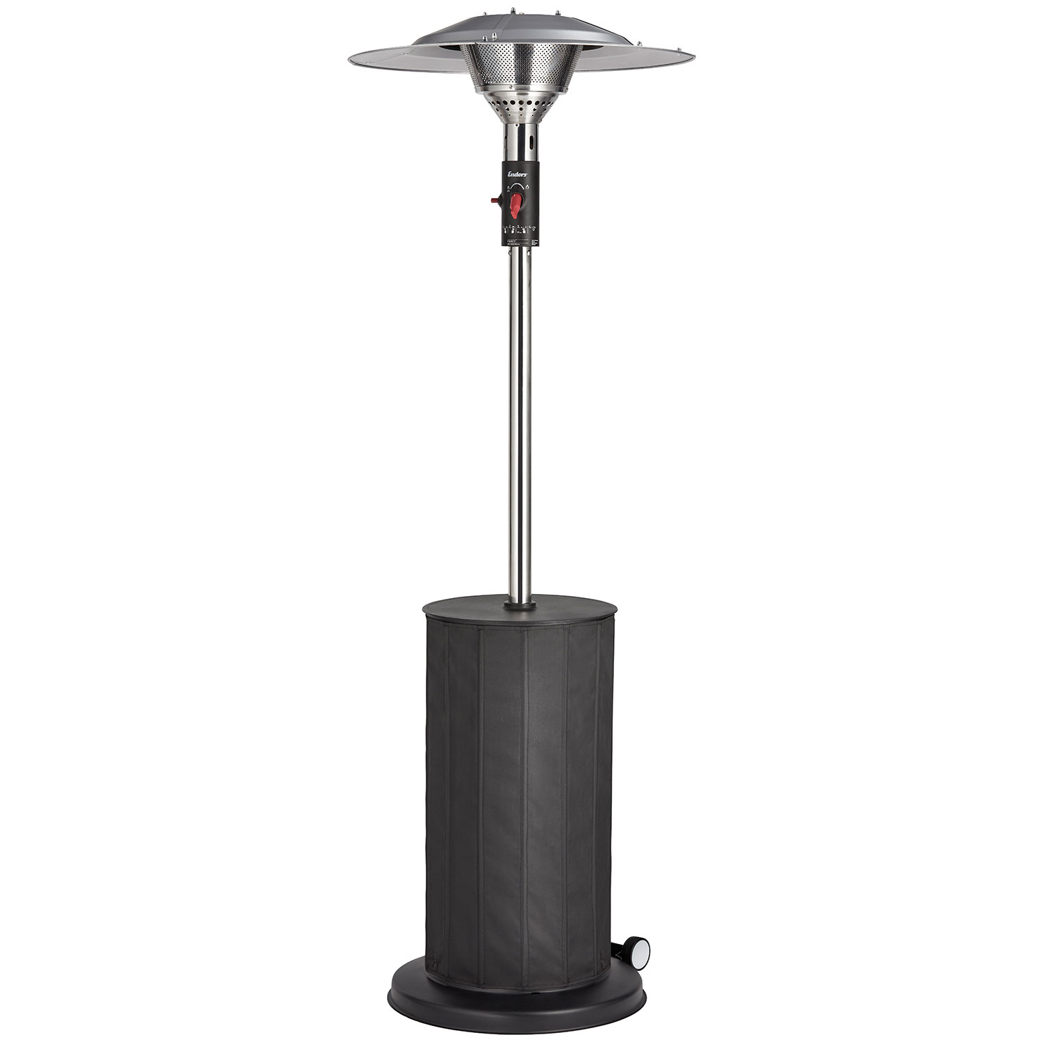 Elegantes Design: Der hochwertige Polyestermantel mit Magnetverschluss und der Materialmix aus Textil und Edelstahl verleihen dem Heizstrahler ein modernes und exklusives Aussehen, das sich perfekt in jede Umgebung einfügt.