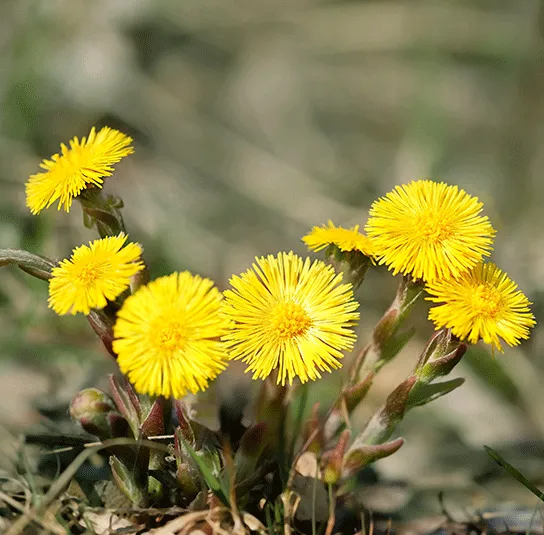 Botanisch: Tussilago farfara (Tussis = Husten, farfara = mehlig [Blattunterseite])