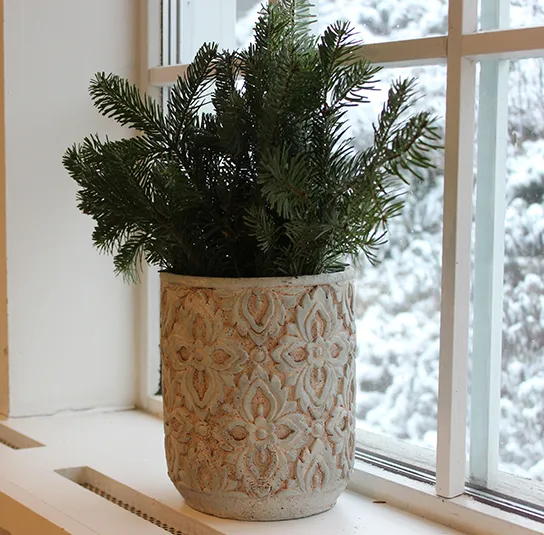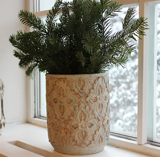 Übertopf, Topf aus Zement Blumenmuster