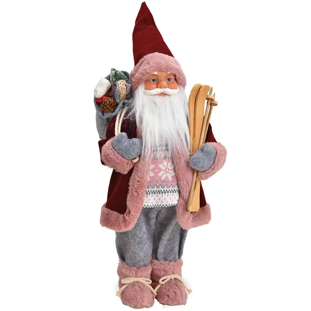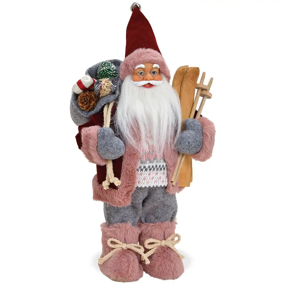 matches21 Große Weihnachtsmänner Santas Nikolaus Sack & Ski rosa grau rot Standfiguren Figuren Weihnachten 1 Stk 3 Größen