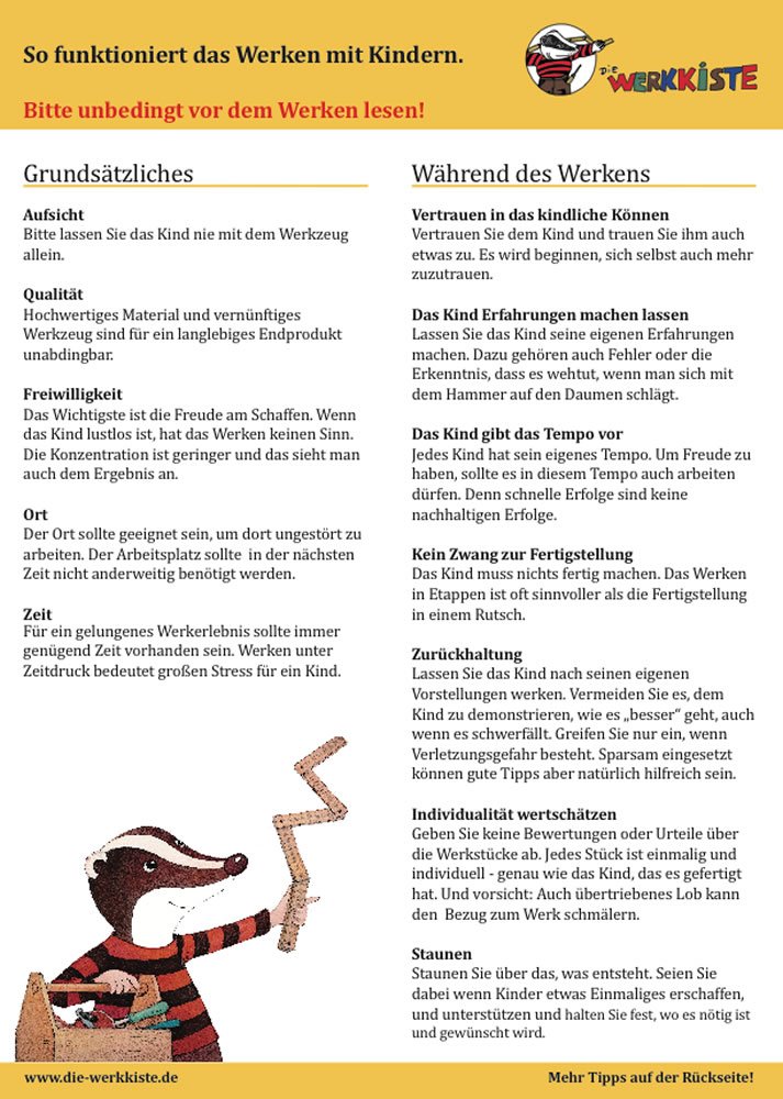 So klappt das Werken mit Kindern! Die wichtigsten Tipps auf zwei Seiten.