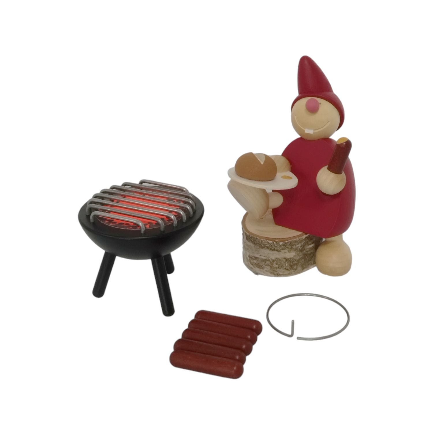 Set bestehend aus: 1 Wicht, 1 Stativring, 1 Grill, 5 Bratwürstchen.