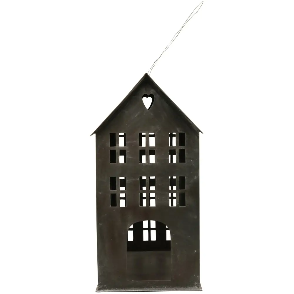 matches21 Windlichter Häuschen Haus Fenster Schnur Teelichthalter Teelicht Metall schwarz 1 Stk in 2 Größen